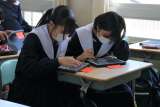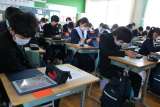3年生は修学旅行に向けて、タブレットを使いながらクラス別研修の調べ学習をしました。