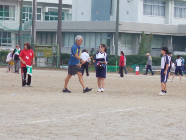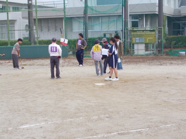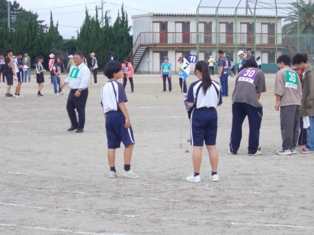 地区の行事で、毎年行われています。東中生はボランティアとして、主に審判・記録の仕事を任されていました。参加された地区の方とも会話しながら、楽しくボランティア活動をしていました。