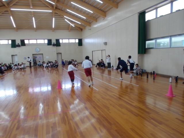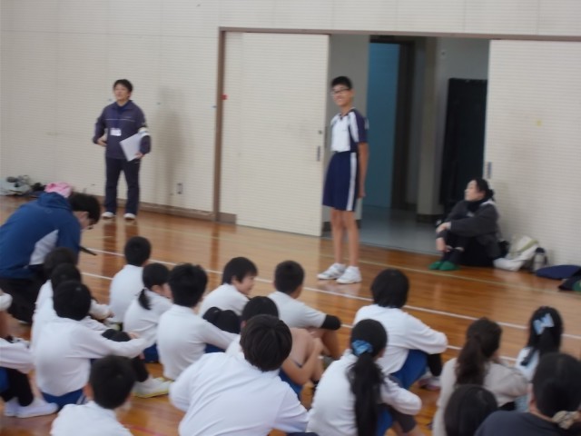 東中の生徒たちが司会進行や準備・競技の補助をしました。小学生の子たちの前で、とても立派な「お兄さん」「お姉さん」ぶりが見られました。それぞれの競技を楽しみ、見守ることができ、会場内はとても温かな雰囲気となっていました。