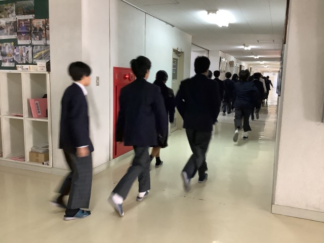 安全に避難するための避難経路を選んで、落ち着いて行動することができました。職員が初期消火の対応をし、火災発生から消火確認までの職員の動きも実施しました。生徒だけでなく、職員の防災意識を高めることができました。