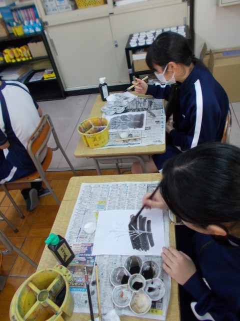 15日(木)16日(日)の2日間にわたり、藤井達吉美術館の先生方に講師として来ていただき、水墨画についての授業を行っていただきました。白色をどう表現するか?を予想する場面では、いろいろな予想が出てきました。水墨画は墨だけで描くため、さまざまな技法が使われていることを知り、興味深く話を聞いていました。授業の後半は、実際に技法を体験することができました。