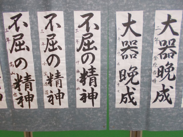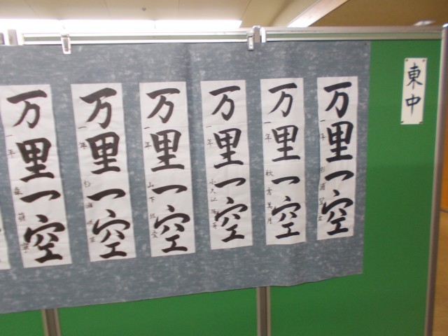 17日(土)と18日(日)は、文化会館で市内書き初め展が行われました。各校の特選に選ばれた生徒の作品が一堂に展示されていました。東中生徒の作品も展示されていました。どの作品も雄大な筆運びで書かれていました。一画一画を丁寧にし、集中して書き上げた様子がよくわかりました。