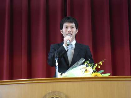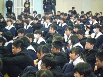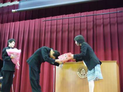 学級や部活動でかかわりの大きかった生徒から花束とメッセージを送り、お別れをしました。また、先生方からは熱いメッセージをいただきました。最後に全校生徒で校歌を大合唱してお送りしました。