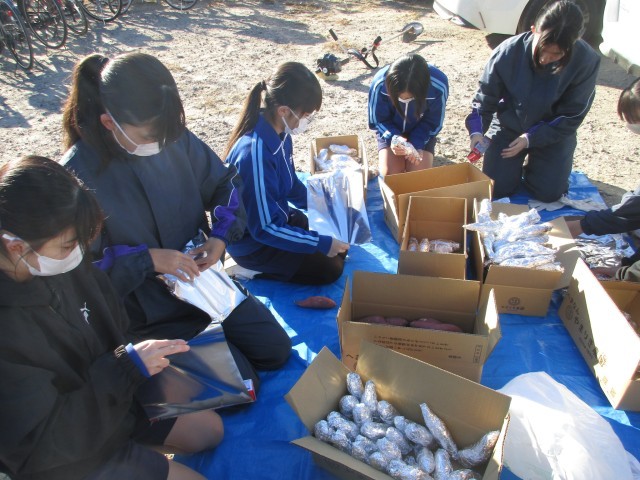 集めた葦を燃やし、その後の熾(お)き火で作った焼き芋もいただきました。「油ヶ淵葦船学校」(葦船は令和3年に活動終了)から続いているこの「葦刈り」は、油ヶ淵の美化のために長く続いている活動です。「地域を知る」よい機会になりました。