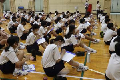 夏休みの間に作品をつくるための新聞を集めてもらいます。今日の授業をふまえて、どんな作品にしようか考え、心づもりをしておきましょう。
