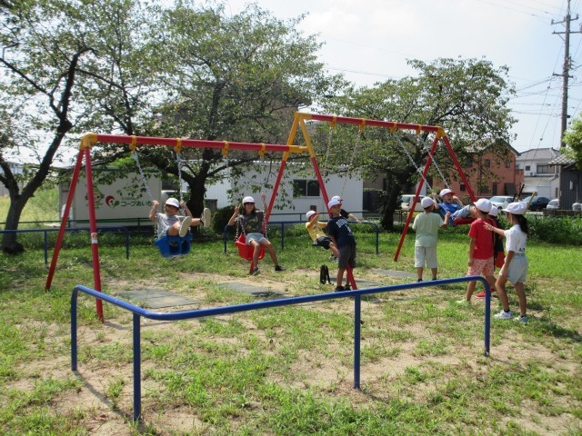 2年生の子どもたちが、生活科の勉強で日進小学校の周りを探検しました。日進南公園では、みんなで遊具遊びもしました。