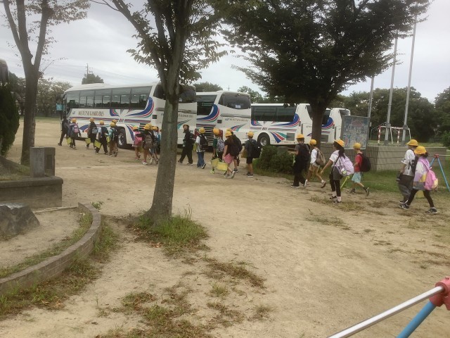 10月14日(火)、1・2・3・5年生が校外学習に出発しました。1年生は「鞍ヶ池公園(豊田市)」、2年生は「南知多ビーチランド(美浜町)」、3年生は「竹島水族館(蒲郡市)・愛知こどもの国(東幡豆町)」、5年生は「トヨタ会館(豊田市)・三菱自動車岡崎製作所(岡崎市)」に向かいました。