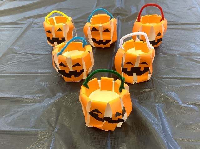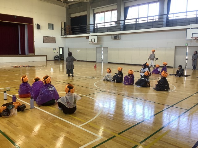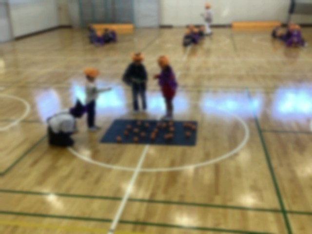10月28日(火)2時間目、南学級が体育館でハロウィンパーティーを行いました。かぼちゃの帽子をかぶり、マントをつけて楽しくゲームをしました。