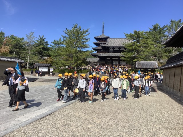 10月29日(水)~30日(木)、6年生が1泊2日で修学旅行に行きました。1日目は、法隆寺、奈良公園(大仏殿・二月堂等)、若草山、金閣寺に行きました。