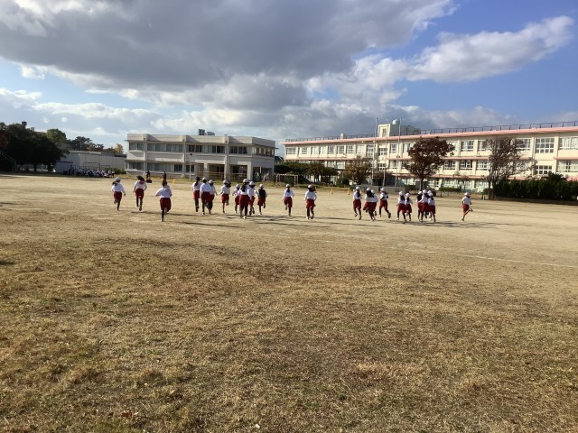 11月28日(金)、4・5年生のマラソン大会の練習の様子です。実際のコースを走りました。