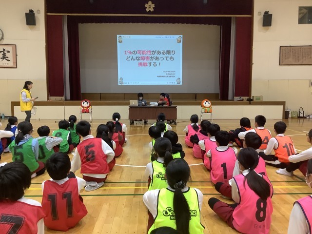 12月2日(火)、日進小学校体育館で「ボッチャ体験教室」を行いました。6年生が参加し、ボッチャの体験をしたり、講師の加藤様の講演を聞いたりしました。名古屋法務局人権擁護部・名古屋法務局刈谷支局・刈谷人権擁護委員協議会の皆様、講師の加藤様ありがとうございました。