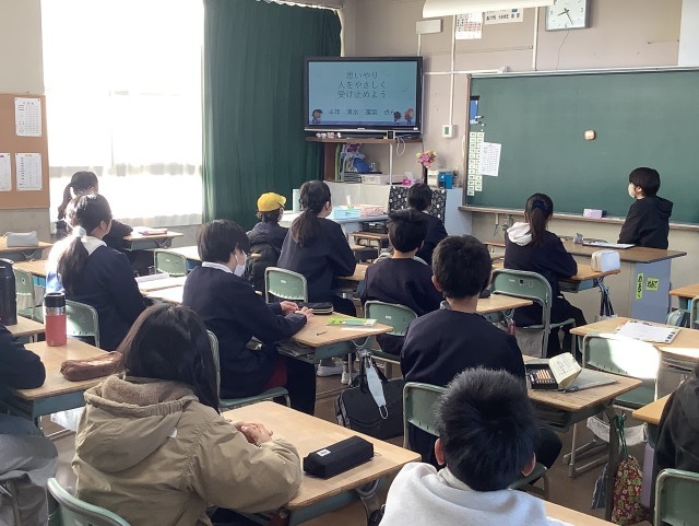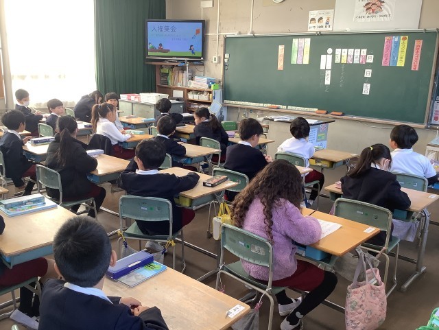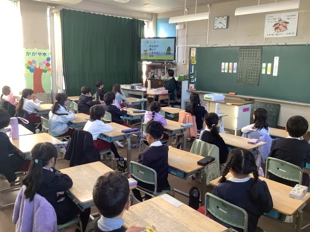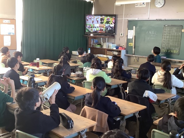 12月9日(火)、児童会が企画運営し、人権集会を行いました。テレビ放送で人権尊重の重要性や必要性を呼びかけたり、事前に各クラスで取り組んだ人権標語の中から選ばれた作品を紹介したりしました。人権についての理解を深めるよい機会になりました。