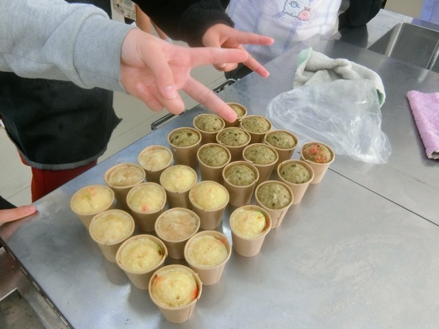 12月22日(月)、6年生が「お楽しみ調理実習」を行いました。チョコレートとあずきのカップケーキを作りました。とてもおいしくできあがりました。