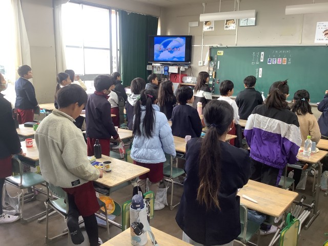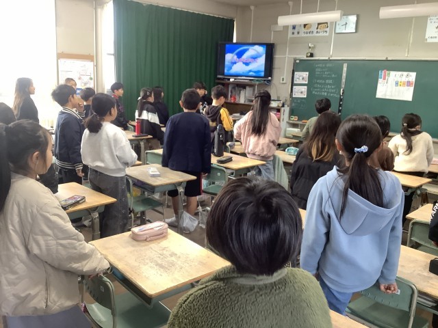 1月28日(水)、3年生の「朝の歌」の様子です。今月の歌は、「虹」です。