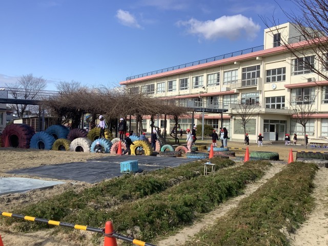 1月28日(水)、にこにこタイム(10:25~10:45)様子です。たくさんの子どもたちが、寒さに負けず、外で元気よく遊んでいます。
