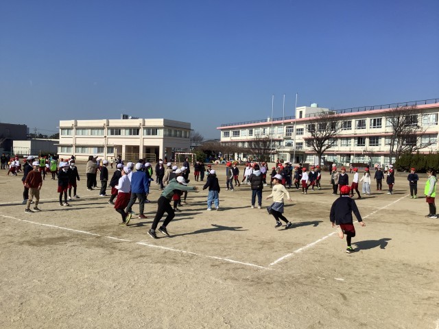 2月4日(水)にこにこタイム、児童会の運営委員会の子たちが企画した全校レクで「日進にっこりドッジボール大会」を実施しました。この日は、1・4年生がそれぞれクラス対抗でドッジボールをしました。児童会運営委員の子たちが進行や審判をしました。みんなで楽しく遊び、笑顔になりました。