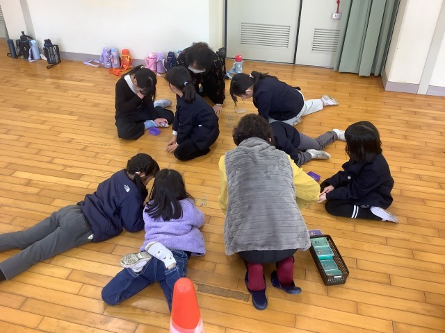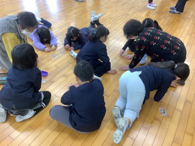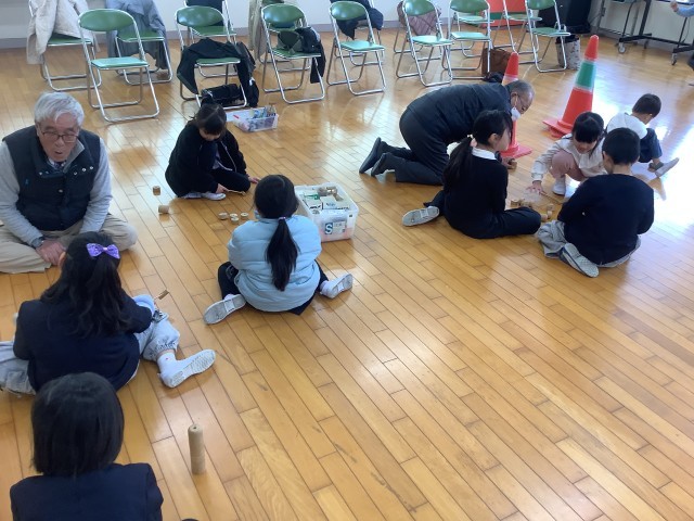 2月5日(木)2・3時間目、新館ホワイトホールで1年生が「むかしあそび」を行いましました。おはじき、けん玉、だるま落とし、あやとり、こま回しを講師のみなさんに教えてもらいながら、一緒に遊びました。講師として来校していただいた地域の皆様、ありがとうございました。