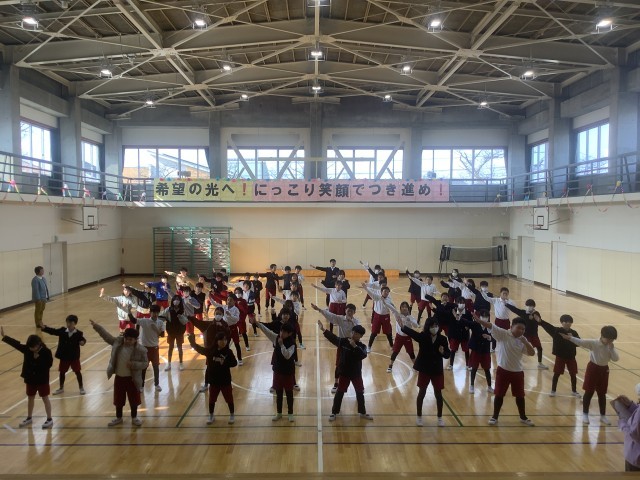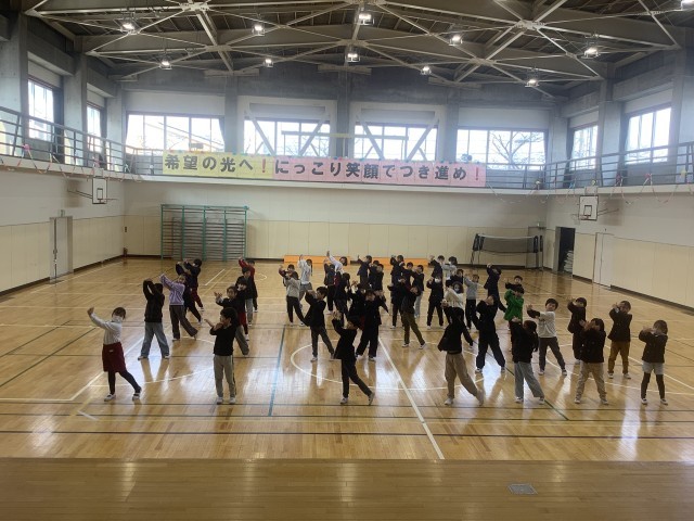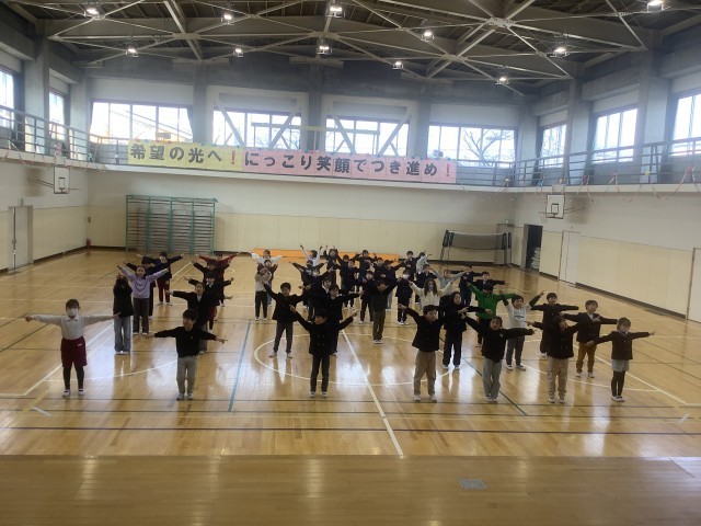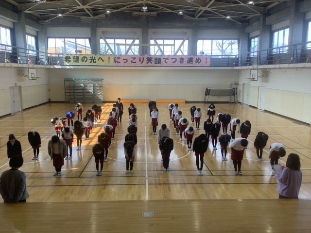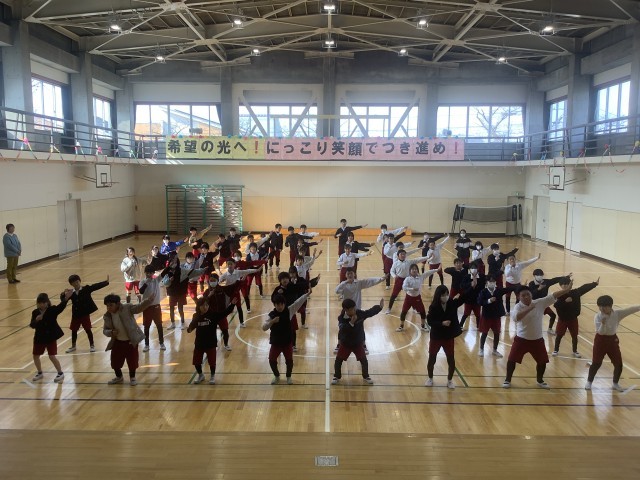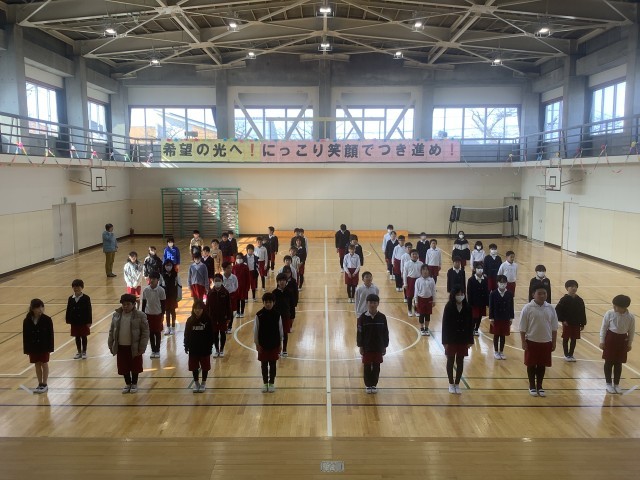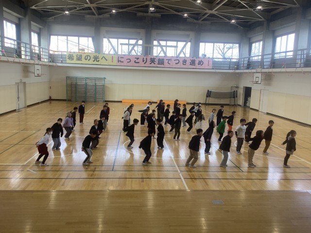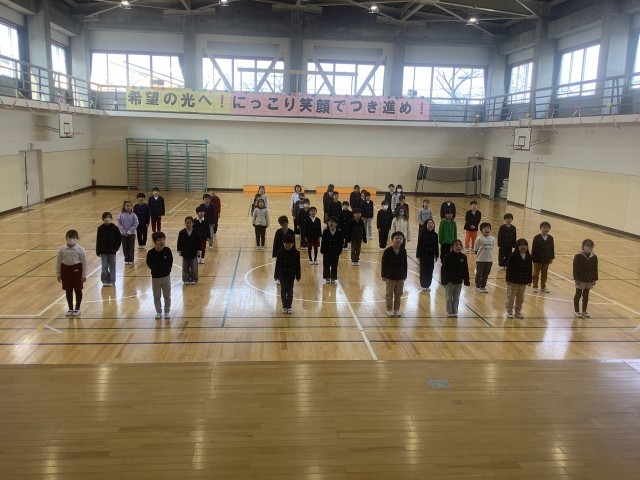 2月16日(月)、2・4年生が、2月19日(木)に行われる「卒業生を送る会」に向けた練習をしている様子です。