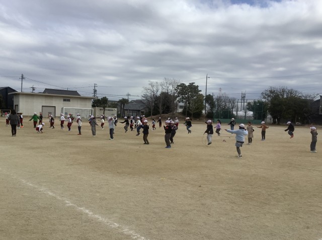 2月17日(火)3時間目、2年生が体育の授業で縄跳びの練習をしている様子です。
