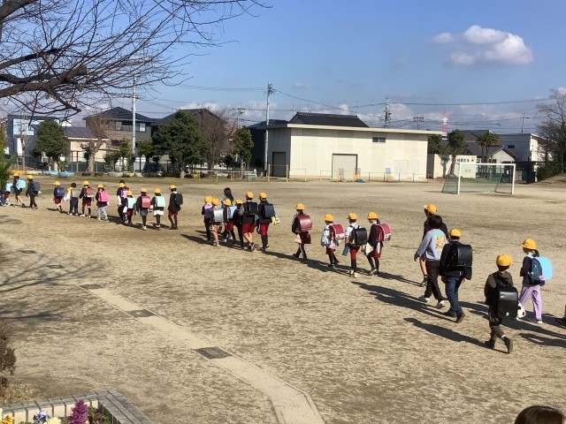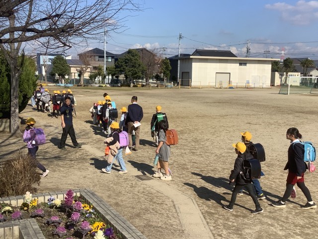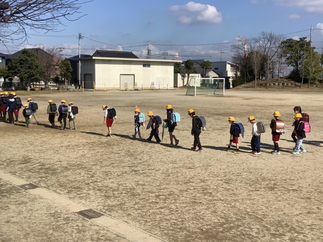 2月26日(木)、通学団会後に行った一斉下校の様子です。