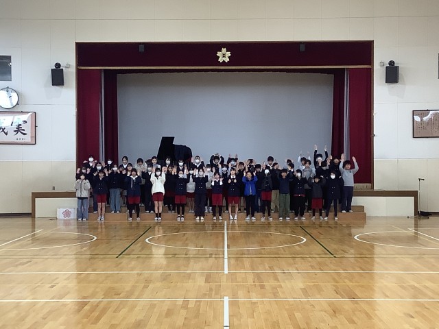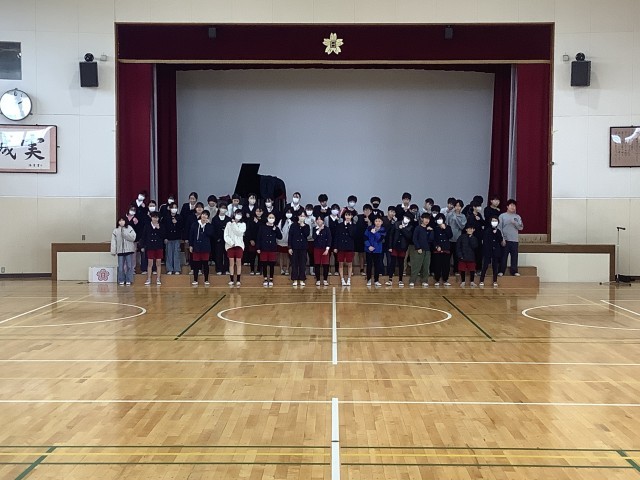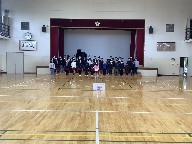 2月27日(金)、6年生が「6年生を送る会」の練習をしている様子です。すばらしい歌声が体育館に響いていました。「6年生を送る会」は、3月3日(火)の5時間目に実施する予定です。