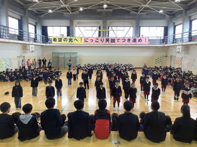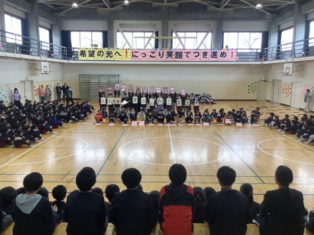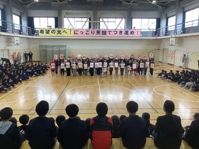 3月3日(火)5時間目、延期されていた「6年生を送る会」を行いました。5年生を中心に各学年が時間をかけて準備をし、心のこもった出し物をしました。