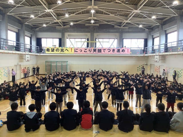 スローガンは、「希望の光へ! にっこり笑顔でつき進め!」でした。6年生のみなさんが、明るい未来へ向かって希望をもって、にっこり笑顔でつき進んでいってほしいというメッセージがこめられています。歌やダンス、振付、呼びかけなど、どの学年も心のこもった出し物をし、感謝の気持ちを伝え合いました。