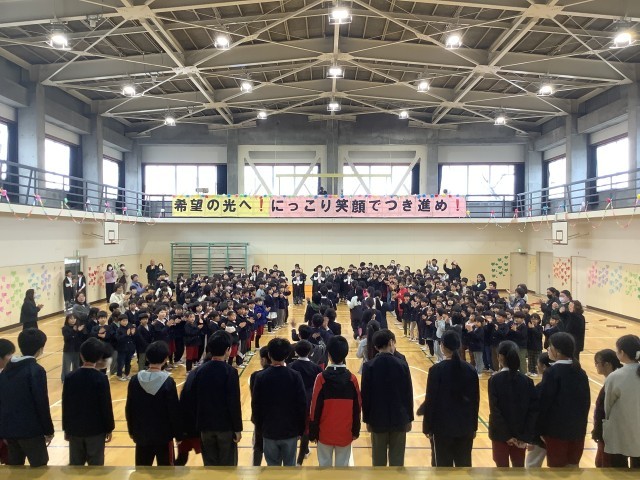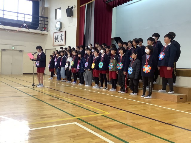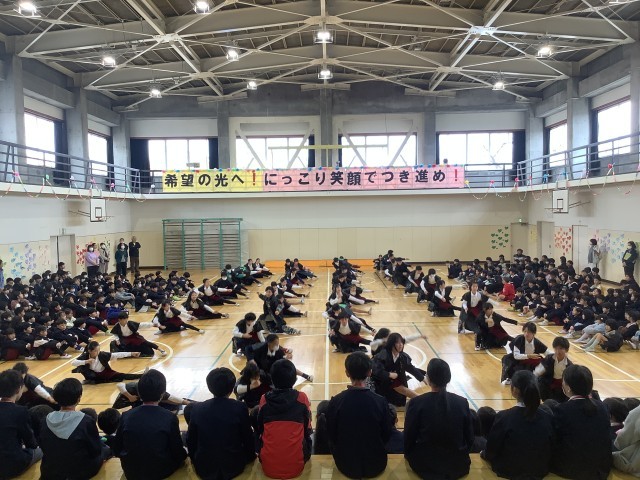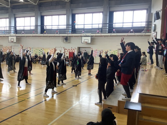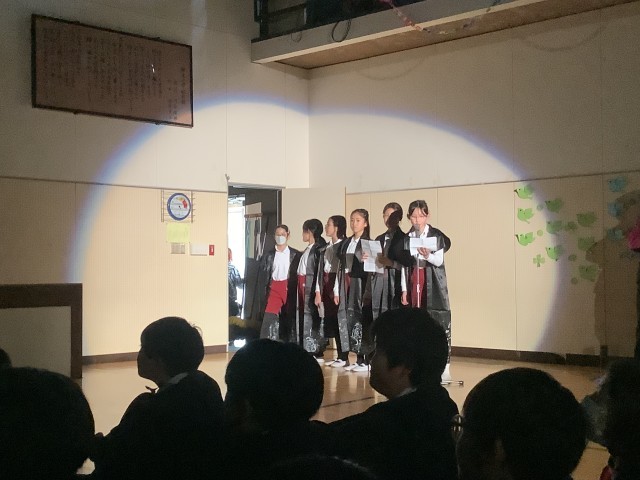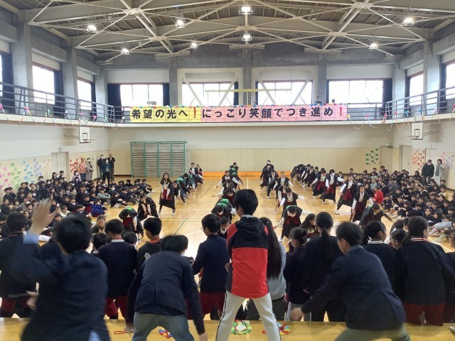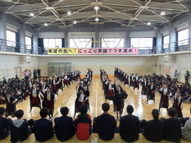 スローガンは、「希望の光へ! にっこり笑顔でつき進め!」でした。6年生のみなさんが、明るい未来へ向かって希望をもって、にっこり笑顔でつき進んでいってほしいというメッセージがこめられています。歌やダンス、振付、呼びかけなど、どの学年も心のこもった出し物をし、感謝の気持ちを伝え合いました。