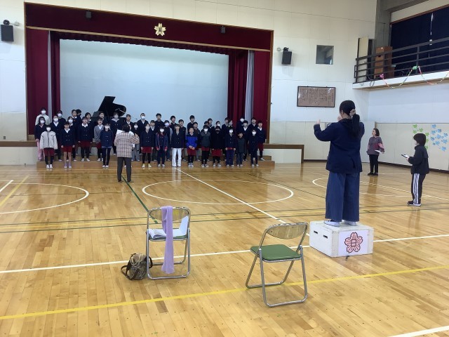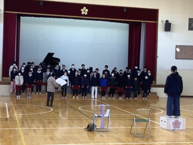 3月4日(水)、講師として奥谷初子先生をお招きし、6年生の子どもたちに卒業式の歌の指導をしていただきました。ありがとうございました。子どもたちのきれいな声が体育館に響いていました。