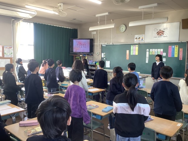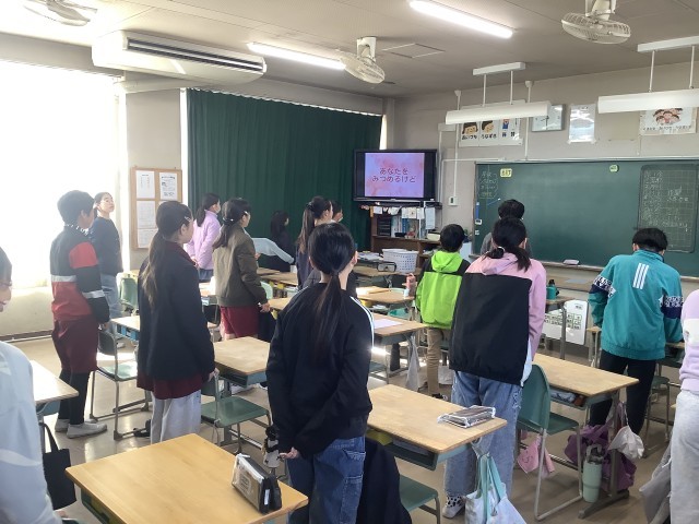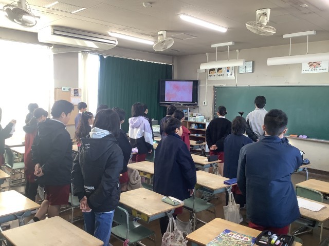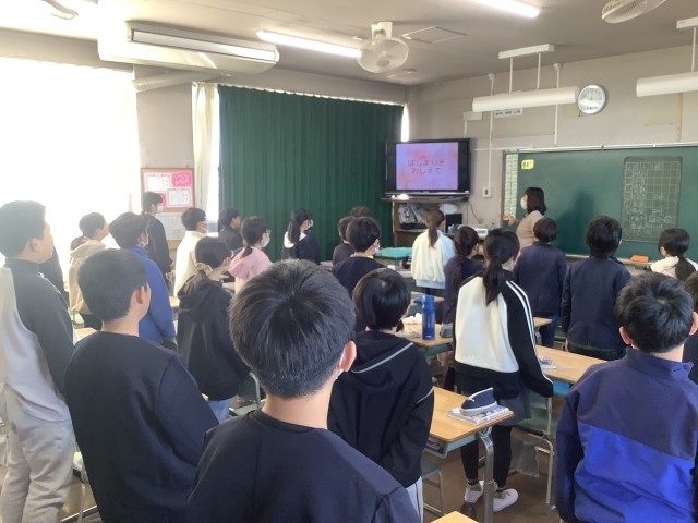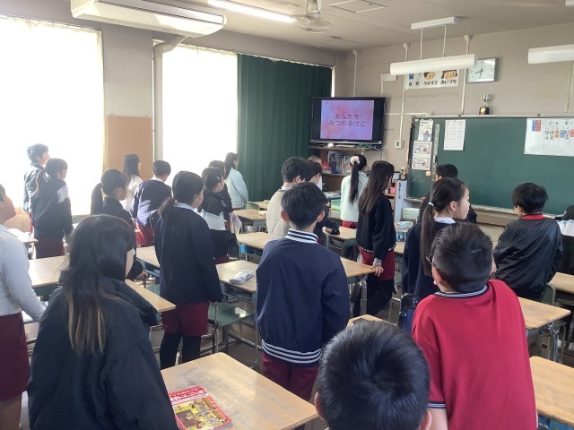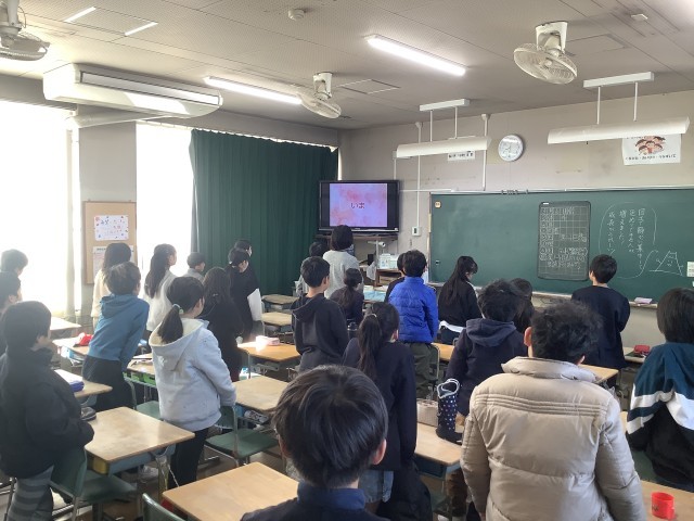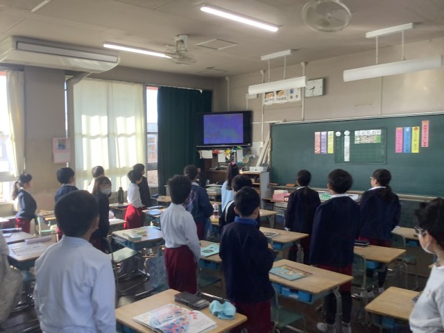 3月5日(木)、2・3・4・5年生の「朝の歌」の様子です。今月の歌は、「ありがとう」です。