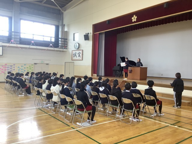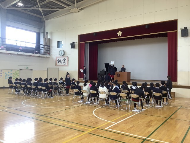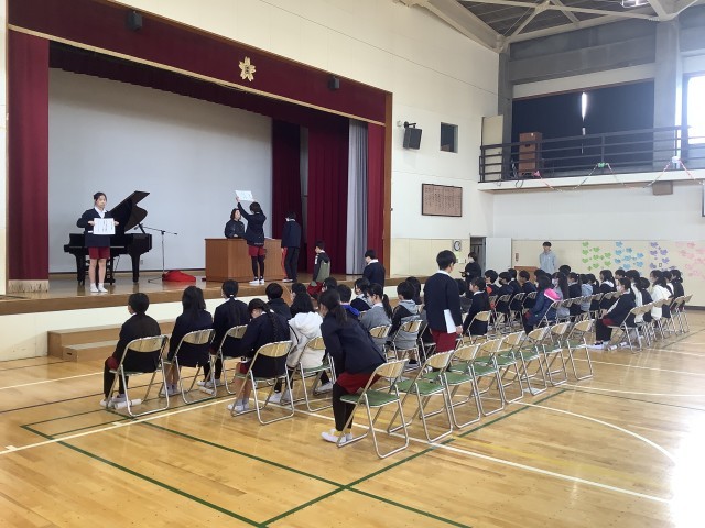 3月6日(金)、6年生が卒業証書授与の練習をしている様子です。