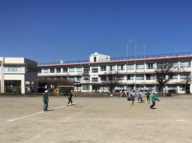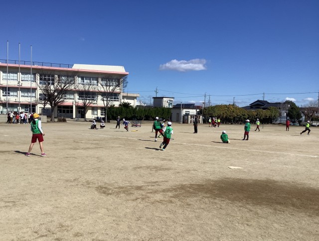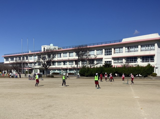 3月10日(火)2時間目、5年西組が体育の授業で「ティーボール」をしている様子です。みんなで声をかけ合いながら、楽しくゲームをしていました。