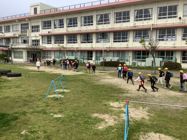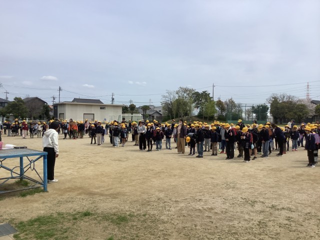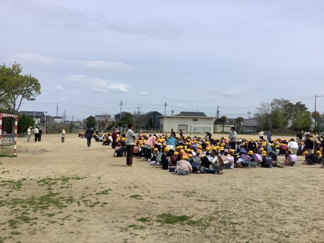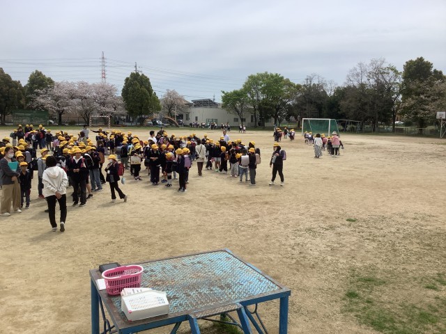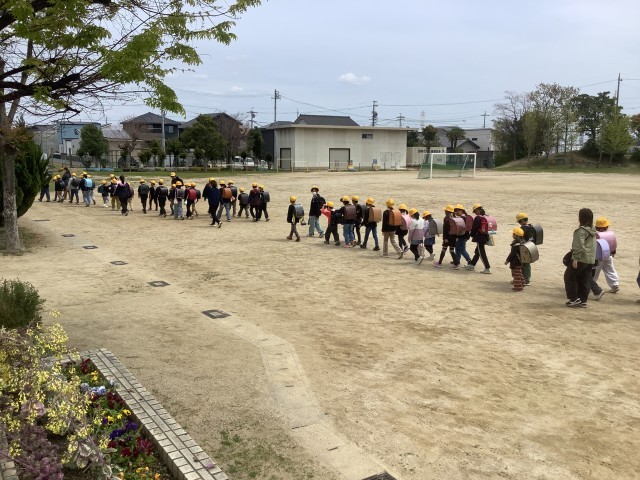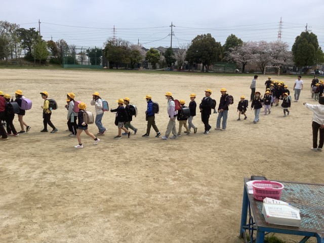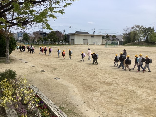 4月9日(木)、通学団会を行った後、一斉下校を行いました。班長さんや高学年のお兄さんお姉さんが、1年生の子どもたちを気にかけながら一緒に下校しました。