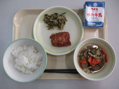 (献立メッセージ)茎わかめはその名の通り、わかめの茎の部分です。茎わかめには食物繊維が多く、おなかの調子を整えたり、便をちょうどよい硬さに整えたりしてくれます。茎わかめのコリコリとした歯ごたえを楽しんでください。