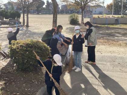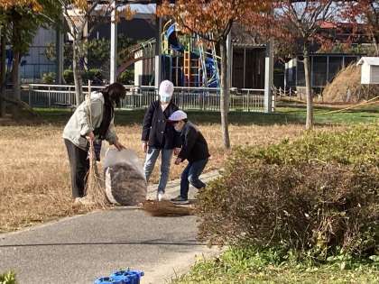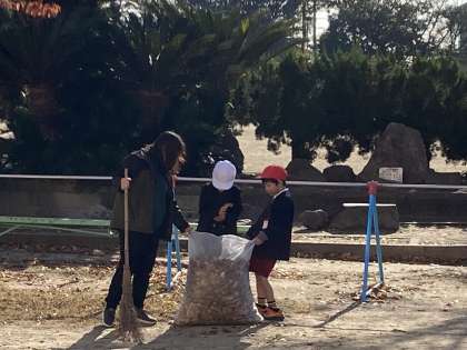 南組の子どもたちが、けやき広場の落ち葉をそうじしました。みんなで協力してがんばってくれたので、とてもきれいになりました。ありがとうございます。