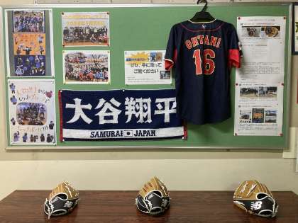 本日、2時間目(9:40〜10:25)に実施します。お時間がありましたら、ぜひご参観ください。校長室前の廊下には、大谷翔平選手から贈られたグローブも展示してあります。