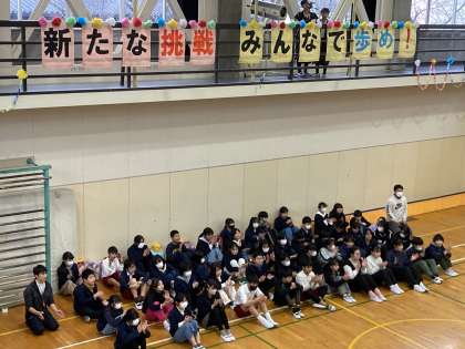 5年振りに全校児童が体育館に集まって、盛大に実施することができました。5年生が中心となって準備を進め、各学年心のこもった出し物を、6年生にプレゼントしました。また、合唱や思い出のビデオもあり、本当に温かな雰囲気の中で、とても感動的な時間を過ごすことができました。