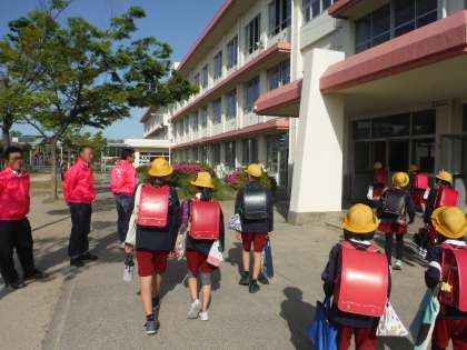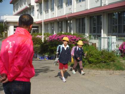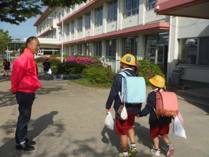 今朝は「おやじの会」やPTA会長さん、子ども会会長さんなどによるあいさつ運動がありました。少しだけ恥ずかしそうな素ぶりの子もいましたが、さわやかな五月晴れの空に、元気の良いあいさつが響きました。