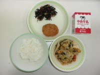 ご飯、牛乳、あじの唐揚げ、葉生姜のふりかけ、じゃがいもの白みそ汁