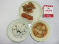 ご飯、牛乳、あじの香り焼き、生揚げのカレー煮、かりもりのごまあえ