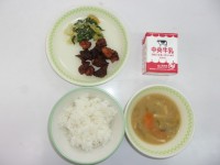 中華めん、牛乳、ちゃんぽんめんのスープ、春巻、給食のやみつききゅうりとトマトのあえもの