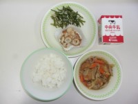 ご飯、牛乳、イカフライ、じゃがいものうま煮、切干大根炒め