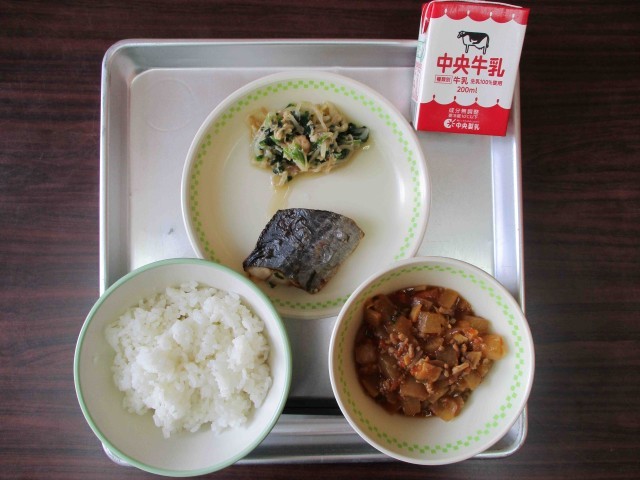 【本日の献立】牛乳・ご飯、さわらのねぎ塩焼き、マーボー大根、ささみともやしのさっぱりあえ