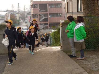 11月15日(水)の朝、碧南市厚生保護女性会の方が、登校してくる子どもたちに「おはようございます」と明るいあいさつをしてみえました。毎月15日に各学校を巡回してあいさつ運動をしてみえるそうです。子どもたちからも元気な「おはようございます」のあいさつが返り、「よくあいさつができますね」とほめていただきました。