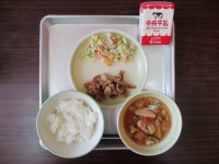 ごはん、お魚ふりかけ、へきなん人参かき揚げ、味わい汁、牛乳