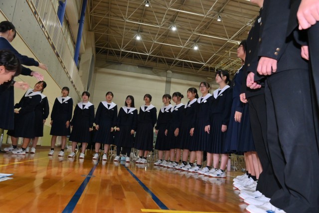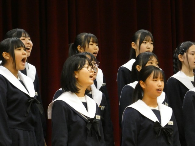 2年生は、声変わりの時期で声が出しにくい男子も多い中、それを感じさせない力強い歌声を響かせました。