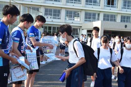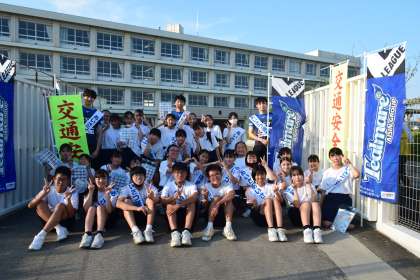 7月11日(火)の下校時間に、碧南警察、交通安全協会、市地域協働課の協力のもとバレーボールのアイシンティルマーレの選手3名が来校され、「さよなら運動」を実施しました。本校からは生徒会執行部とバレーボール部の生徒が参加しました。アイシンティルマーレの選手とふれあいながら、大きな声で「さようなら」とあいさつをして元気に下校していきました。部活動で疲れている中でも笑顔でさわやかなあいさつをする生徒の姿が見られ、明日の登校への活力になる「さようなら運動」だと感じました。