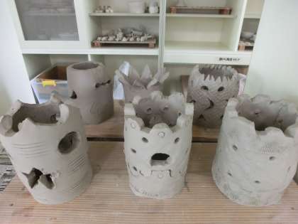 職員の現職教育で陶芸をお行いました。毎年、12月のきらきらウォークでは、3年生の生徒のランプシェードを展示していますが、今年は先生たちも展示しようと、この日現職教育で作成しました。美術の滝先生から作り方を教えていただき、各自で順序に従ってランプシェードを作成しました。陶芸の土を触るのは初めてだという先生もあり、皆さん真剣な表情でした。知らず知らずに陶芸に入り込み時の経つのを忘れるほどでした。なかなかの作品ができあがりました。さすがです。