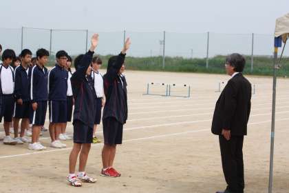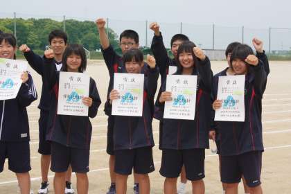 例年この時期に碧南市の中学校陸上競技大会が新川中学を会場に行われていましたが、今年度からスタイルが変わり、名称、会場、種目などが大きく変わりました。特に、今までは各中学から選抜された選手の大会でしたが、今年からは陸上部を主にした大会になりました。会場も臨海の2号地グランドになりました。