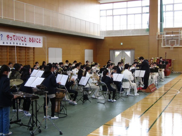 愛知県警察音楽隊の皆さんにお越しいただき、交通安全教室を行いました。